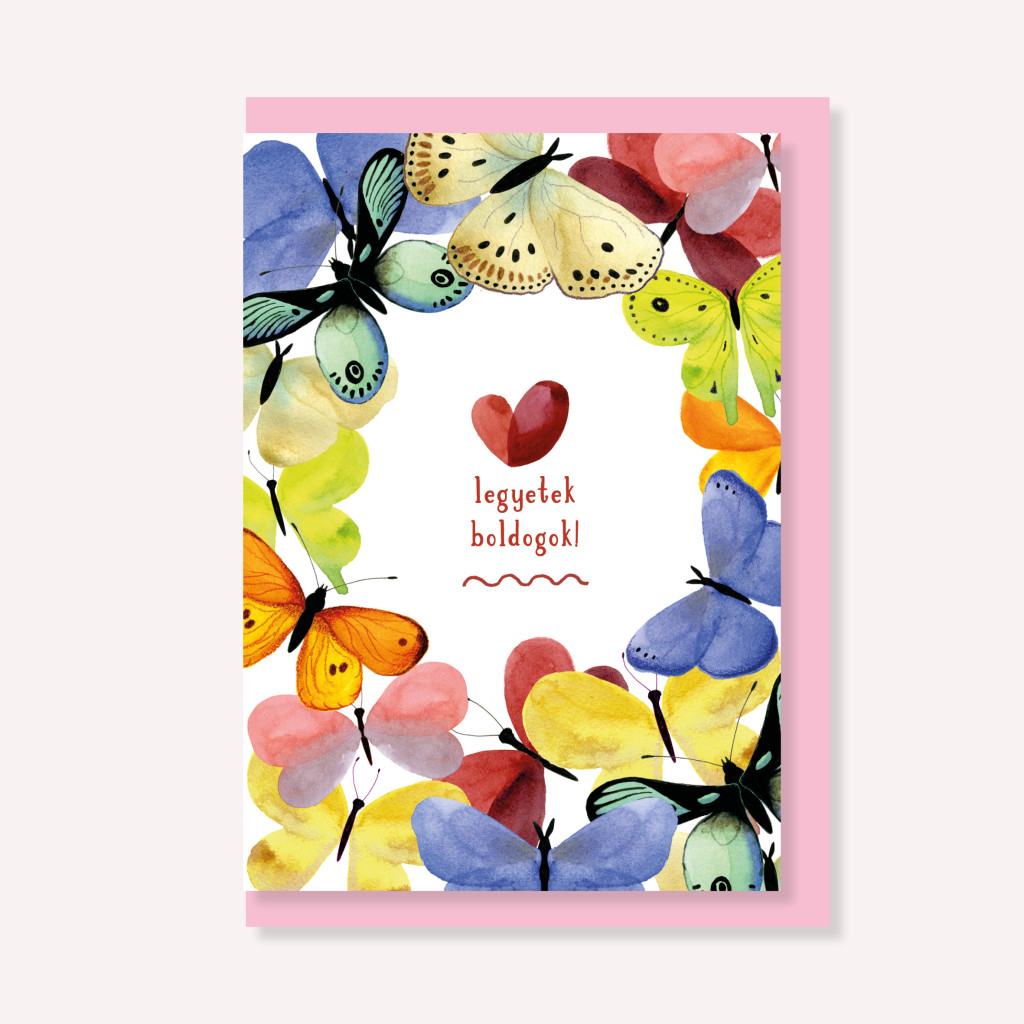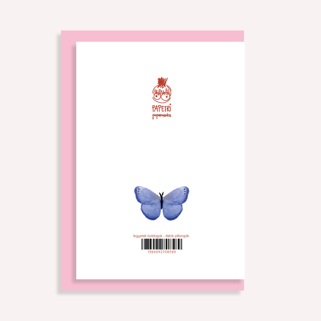 Ez a pillangó illusztrációval készült képeslap egyszerre kedves és személyes választás, ha valakit szeretnél meglepni.