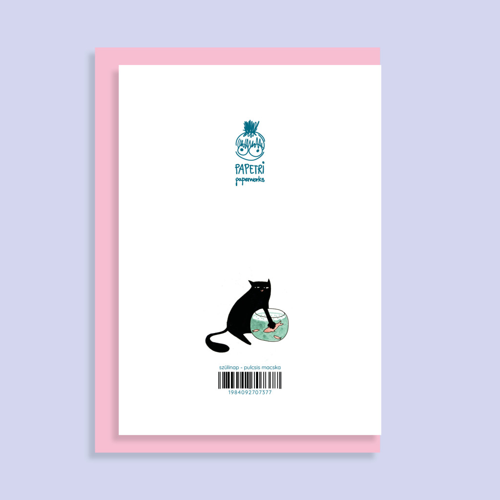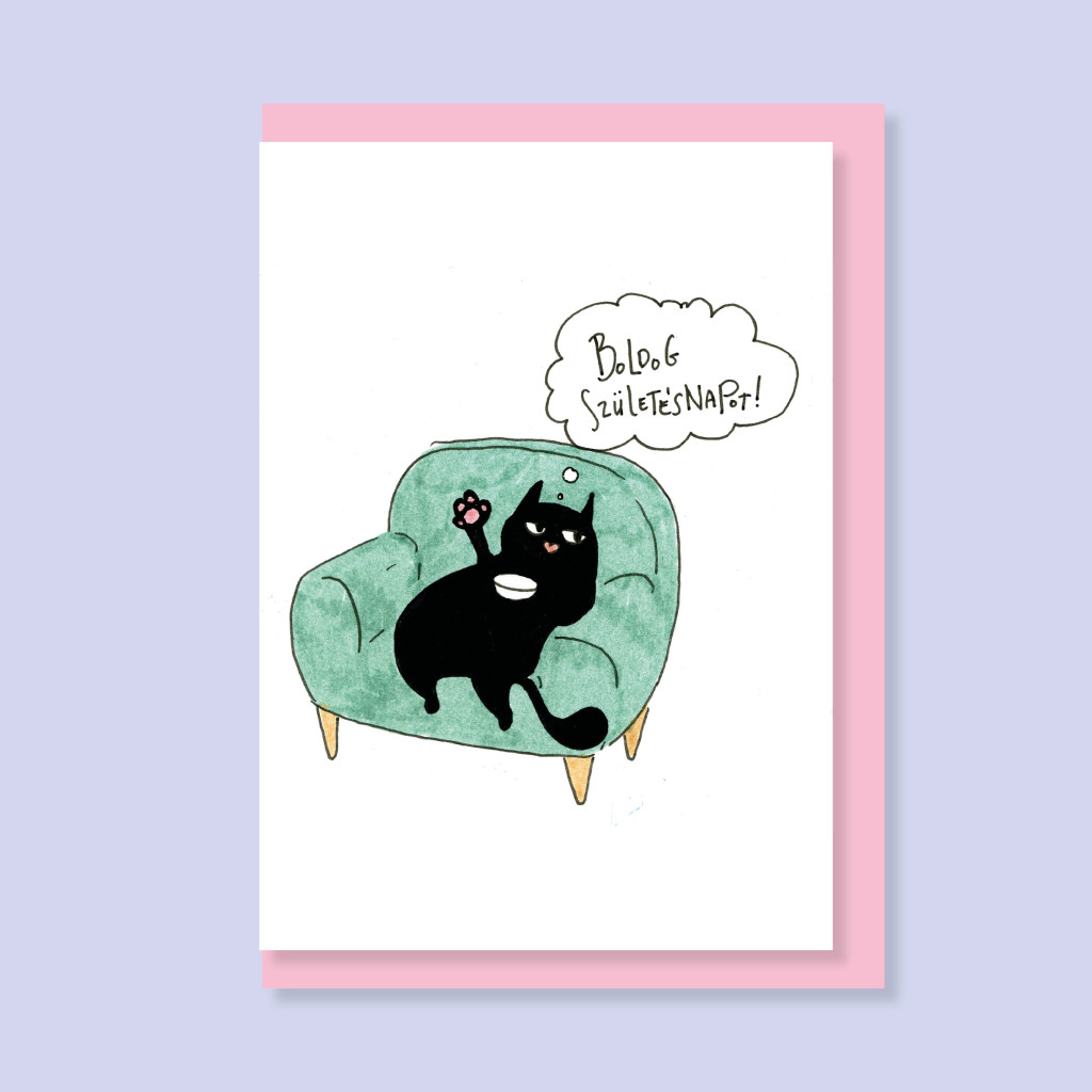 A fotelben pihenő cica nem siet sehová – pont mint egy jól sikerült születésnap. Ez a kedves, illusztrált képeslap tökéletes választás, ha valami igazán szerethető és személyes kísérőt keresel az ajándék mellé.
