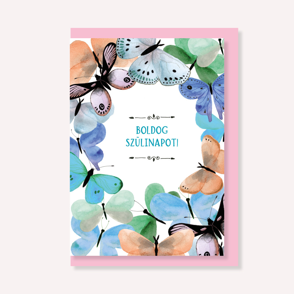 Ez a pillangó illusztrációval készült képeslap egyszerre kedves és személyes választás, ha valakit szeretnél meglepni.
