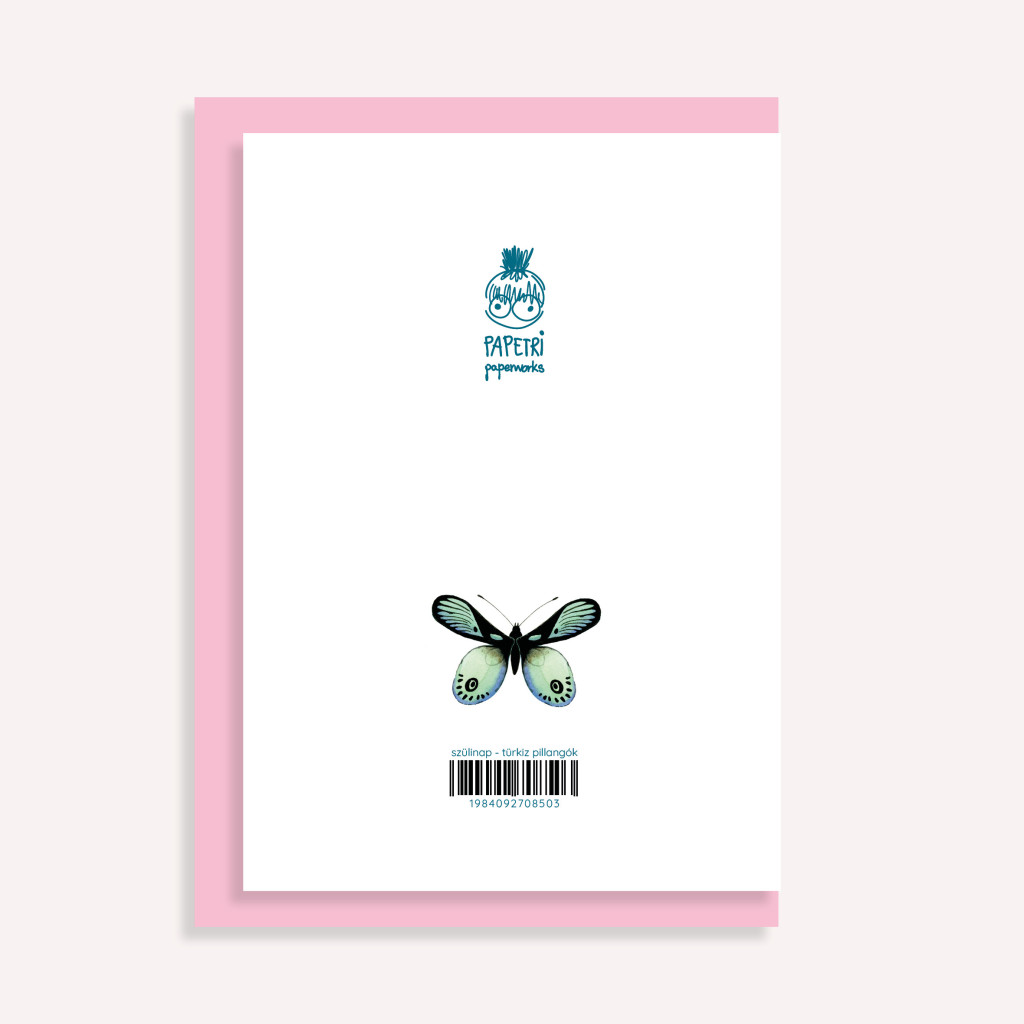 PAPETRI borítékos képeslap - türkiz pillangók - születésnapi képeslap